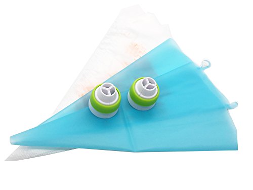 Piping Bags Tricolor Couplers 14Pcs/set, KOOTIPS 2 Reusable Silicone and 10pcs Disposable Pastry Bags Cake Decorating Supplies Frosting Bags with 2 Tricolor Couplers Cake