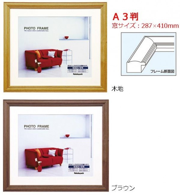 fk094igrjs優しい木肌が素朴でハートウォームな木製写真額です。 製造国:中国 素材・材質:木製フレーム(天然木・松)ガラス板(2mm厚) 商品サイズ:437×526×14mm 仕様:デジタルA3判収納用紙サイズ:397×486mmマット窓サイズ:287×410mmVカットマット台紙:薄茶(薄手・1mm厚)×1枚吊り金具付 付属品:吊りヒモ※お届け地域により、別途運賃がかかる場合やお届けできない場合がございますので、お問い合わせ下さい。