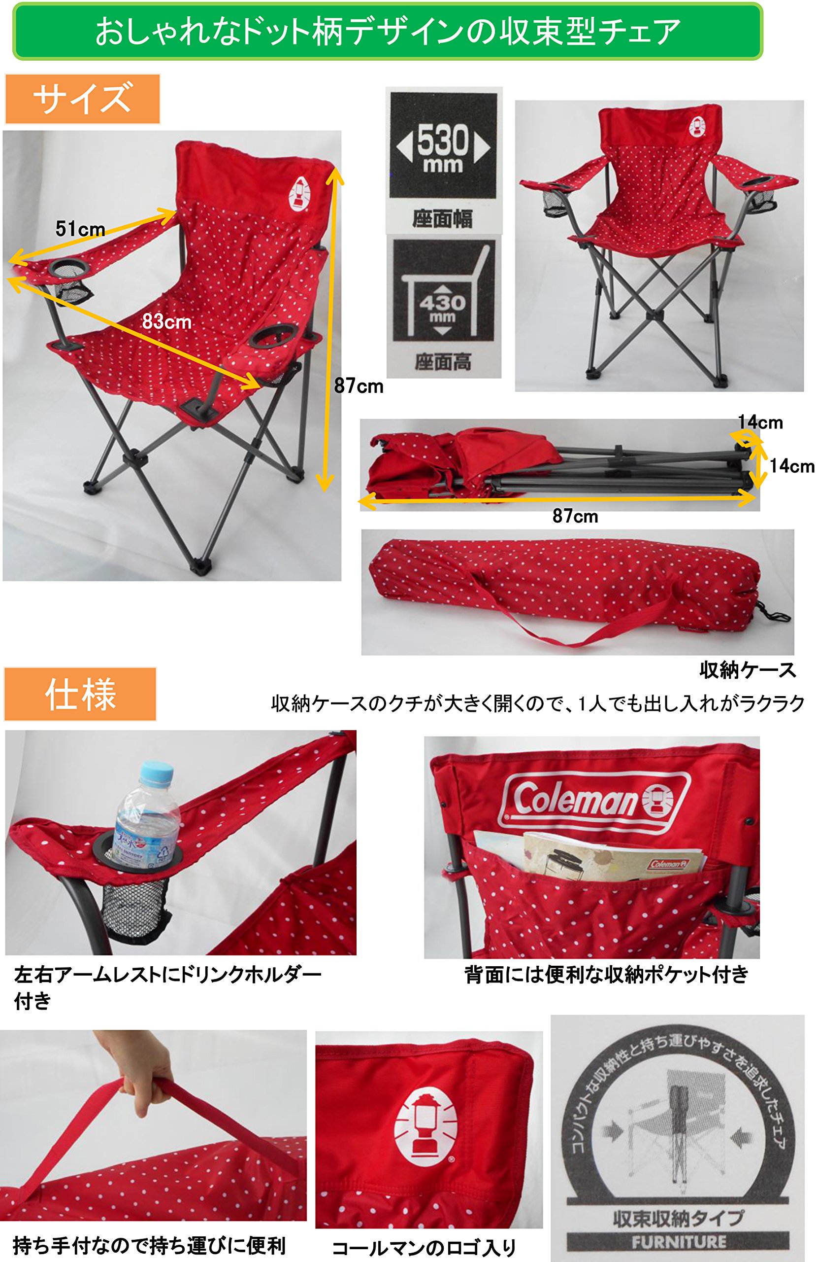 Fashionable dot pattern design, easy-to-use convergent type chair.