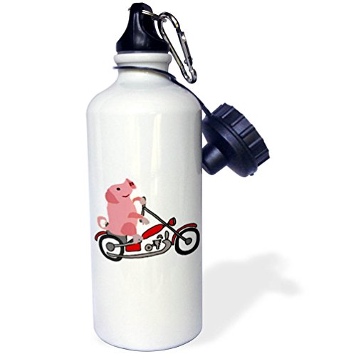 -. Title : 3dRose All Smiles Art Sports and Hobbies - Funny Cute Pink Pig or Hog Riding Motorcycle Cartoon - 21 oz Sports Water Bottle (wb_256482_1)