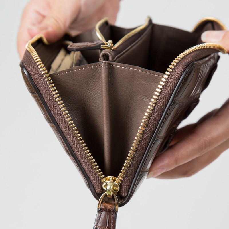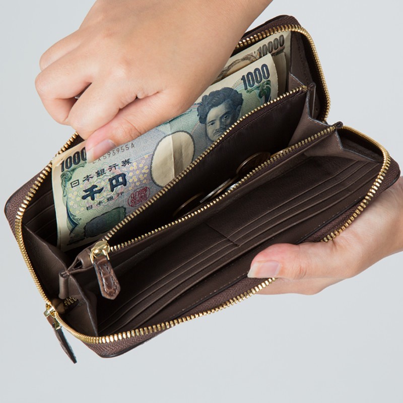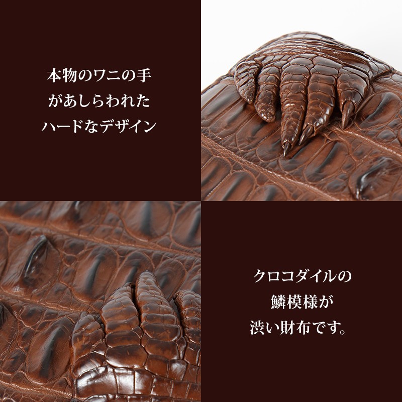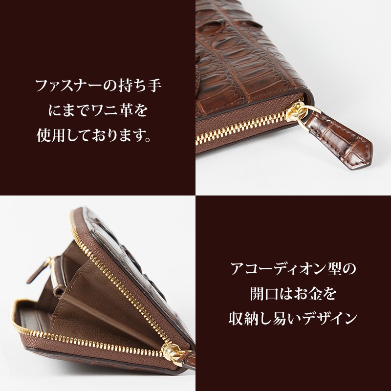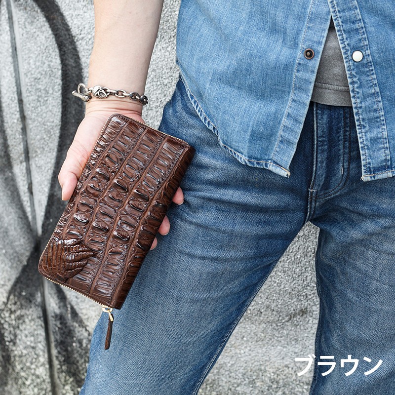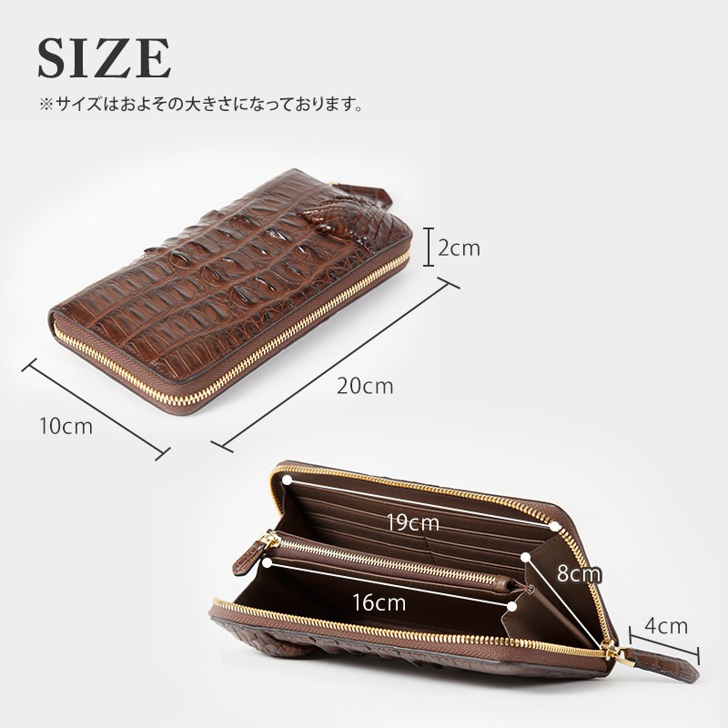 【サイズ】縦10cm × 横20cm × 厚さ2cm(外寸)横8.5cm(カードポケット)横19cm(お札入れ)横15cm(コイン入れ)【素材】ワニ革(クロコダイル)【カラー】ブラック / ブラウン【仕様】カード入れ × 12札入れ × 4コイン入れ × 1(ファスナー式)