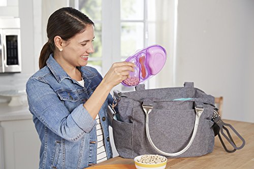 -. Feature : Plates double as lids for on-the-go convenience / Each leak-proof compartment seals independently / Built-in utensil compartment / 4 plates and 1 fork included / Dishwasher safe, Made without BPA