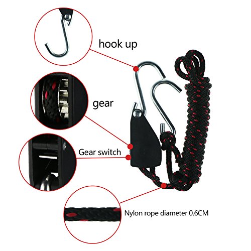 Lycantant 2 x Adjustable Grow Light Rope Hangers with 1/4" Metal Rope Ratchets Reflector Hydroponics Grow Tent Hanger Upto 136KG (Black+Red), More Stronger