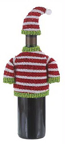 Red & White Stripe Holiday Sweater Wine Bottle Decoration by Ganz