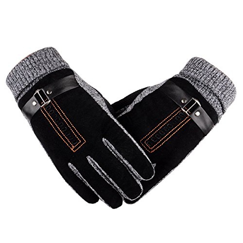 1 * Men's Winter Leather Gloves Thick Warm Fleece Windproof Gloves Cold Proof Thermal Mittens - Ideal for Dress, Driving, Cycling, Motorcycle, Camping etc