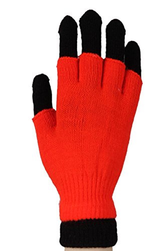 Veil Entertainment Solid Double Layer 2 Pair Acrylic Fingerless Gloves, One Size, Neon Red Black