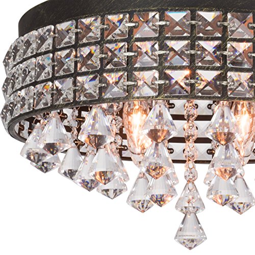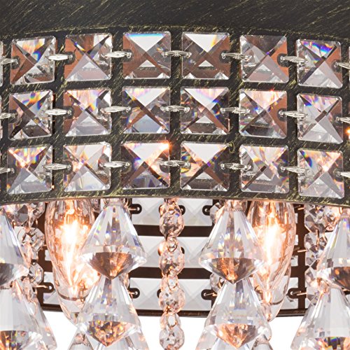 The Gemma 15" crystal ceiling light showcases a hand Brushed Black finish with beautiful Gold accents. Complimented by stunning rhinestones and lustrous crystals, this Flush Mount is the definition of magnificence. The unique rhinestone shade creates a sparkling, masterful light projection that is perfect when placed in any bedroom, living room, or walk-in closet.
