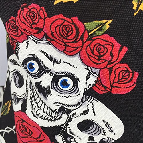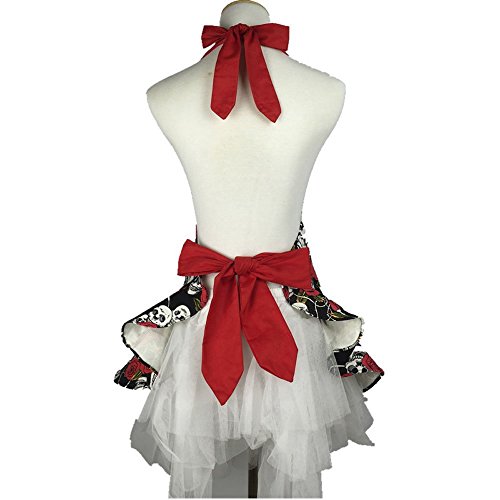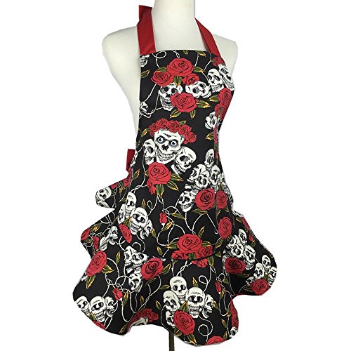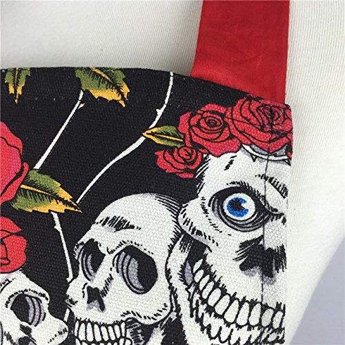 Aprons For Women Retro Cute Cooking Kitchen Apron,100% Cotton Canvas Rose Skull Aprons(Black and Red)