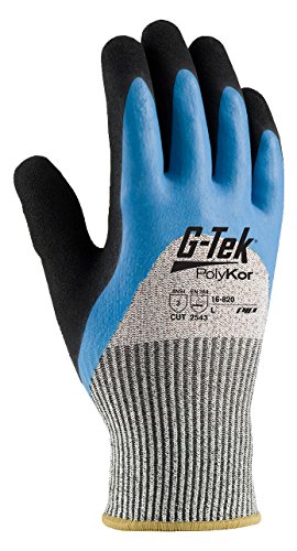 G-Tek CR 16-820/L Seamless Knit HPPE/Glass Glove with Acrylic Lining and Double-Dipped Latex Coated Micro-Surface Grip on Palm, Fingers and Knuckles