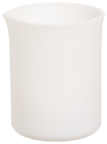 - Round, white, Griffin-style beaker for tough laboratory conditions and use with highly corrosive reagents, including hydrofluoric acid