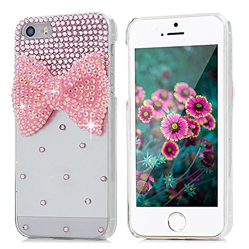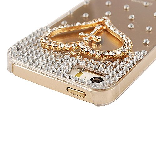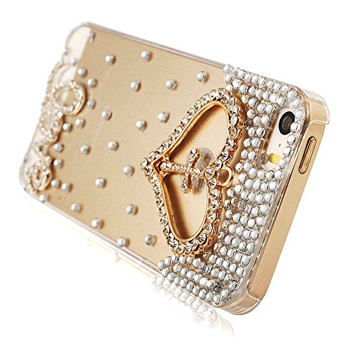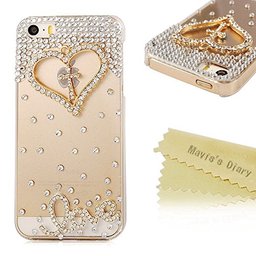Iphone SE Case,Iphone5S Case,Iphone 5 Case - Mavis's Diary Luxury 3D Handmade Bling Crystal Golden Love Heart Cross with Shiny Sparkle Rhinestone Diamonds Girly Clear Hard Cover with Soft Clean Cloth