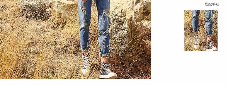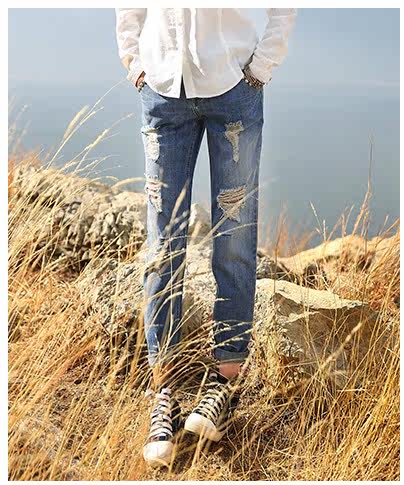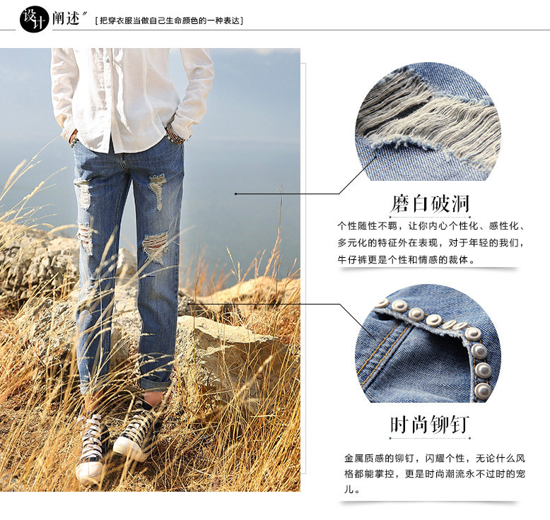 磨旧破洞的设计是牛仔裤中的经典,割裂开来的孔洞,个性透气,歌颂着年轻的活力与不羁。 磨毛破洞 | ![]() |