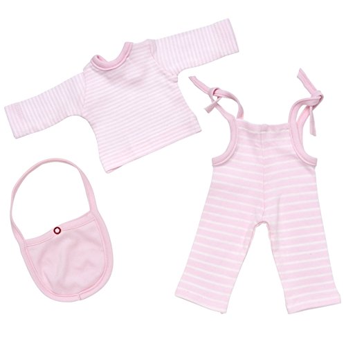- Fair skin body with brown hair, a striped dress and red pants, comes with a change of clothes - a striped pink top, pale pink stripe overalls and a matching stripe bag