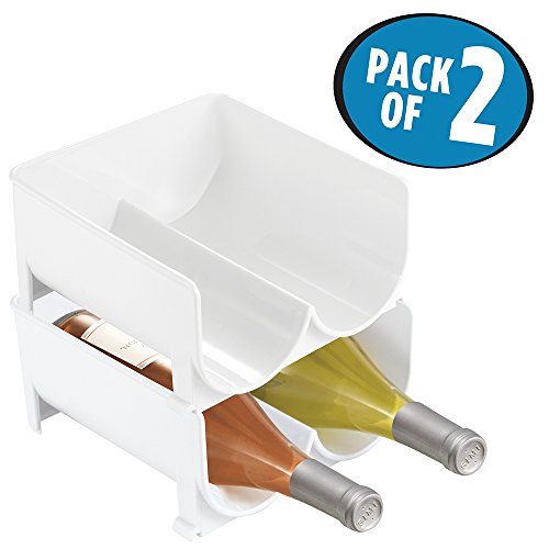 mDesign Stackable Wine Bottle Storage Rack for Kitchen Cabinet, Countertops - Holds 4 Bottles, White