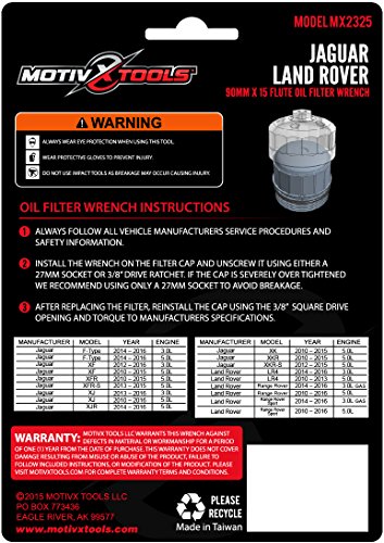 Motivx Tools 90mm 15 Flute Oil Filter Wrench for Land Rover & Jaguar - Fits 3.0L & 5.0L Gas Engines