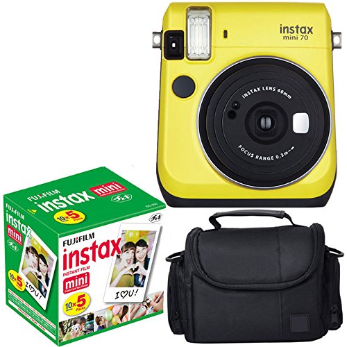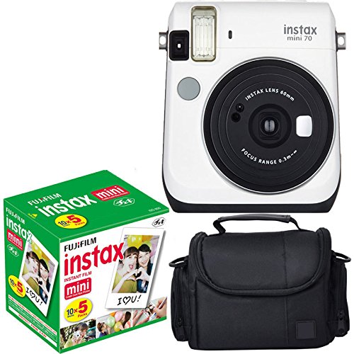 Designed for the selfie enthusiast, the moon white instax mini 70 from Fujifilm is a sleek camera characterized by a range of features for self-portraiture and sharing your instant credit card-sized prints. The camera's design incorporates a retractable two-element Fujinon 60mm f/12.7 lens that permits focusing as closely as 11.8" in macro mode. The optical real image viewfinder has a 0.37x magnification along with a target spot to aid with composition, and the front of the lens incorporates a small mirror to also benefit more accurate selfie compositions. Besides the standard automatic exposure control, with +/- 2/3 EV exposure compensation, the built-in flash can be used in conjunction with an automated exposure mode to adjust shutter speeds for enhanced background detail. A dedicated Selfie shooting mode also automatically adjusts brightness and accounts for the close-up shooting distance of self-portraits and a creative Hi-Key mode brightens the overall exposure for cleaner-looking skin tones. For self-portraits taken at longer than an arm's length, the instax mini 70 also features a tripod mount and a 10 second self-timer. Additionally, for sharing a print with someone, the 2 continuous photo self-timer mode will automatically shoot two frames within the self-timer's duration to provide you a pair of similar prints.Feature