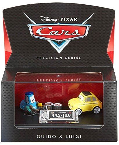 -. Binding : Toy -. Brand : Disney -. EAN : 0887961374964 -. Feature : Exciting premium vehicles from Disney/Pixar Cars with personal die-cast license plates! / Each comes in 1:48 scale with authentic deco, rubber/PVC tires and a moving part that highlights the character's personalities / Includes acrylic case for displaying each authentic, true-to-movie character / Full collection is a must have for every serious collector! Each sold separately, subject to availability. Colors and decorations may vary / Great gift for any Disney/Pixar Cars fan -. IsAdultProduct : 0 -. Label : Mattel -. Manufacturer : Mattel -. Model : DVV42 -. MPN : DVV42 -. NumberOfItems : 1 -. PackageQuantity : 1 -. PartNumber : DVV42 -. ProductGroup : Toy -. ProductTypeName : TOYS_AND_GAMES -. Publisher : Mattel -. Studio : Mattel -. Title : Disney Pixar Cars Precision Series Guido & Luigi Die-Cast Vehicles, 1:55 Scale -. UPC : 887961374964 -. Warranty : 1 year warranty against manufacturer defects