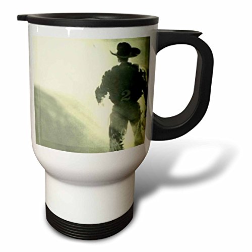 Studio : 3E Rose (Kitchen) Publisher : 3E Rose (Kitchen) Binding : Kitchen Product Description Rodeo Rider Western Travel Mug is a great way to take your favorite hot or cold drink along. With a tapered bottom this stylish 14oz mug fits in a standard cup holder and features an easy-grip handle with thumb rest, slide opening lid and slanted drinking surface. This travel mug is made of stainless steel. Not microwave safe, hand washing is recommended. 0