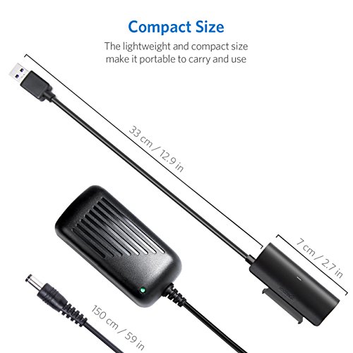Inateck USB 3.0 to SATA Hard Drive 2.5/3.5 Adapter, Hard Drive Converter for 2.5/ 3.5 Inch SSD and HDD, Support UASP, Include a 12V/2A Power Adapter(UA1005)