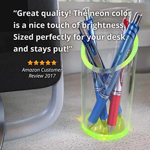 BRING FUN TO YOUR DESK: Re-imagine and bring your desk to life with this acrylic neon yellow pencil cup. The pencil holder brings a modern look to your workspace.