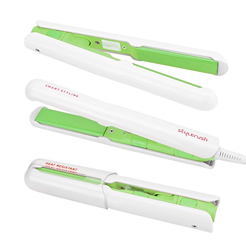 Stylerush Professional Ceramic Mini Hair straightener, Mini Portable Travel Flat Iron with Dual Voltage + **Free Heat Resistant Pouch and Cap - [Green]