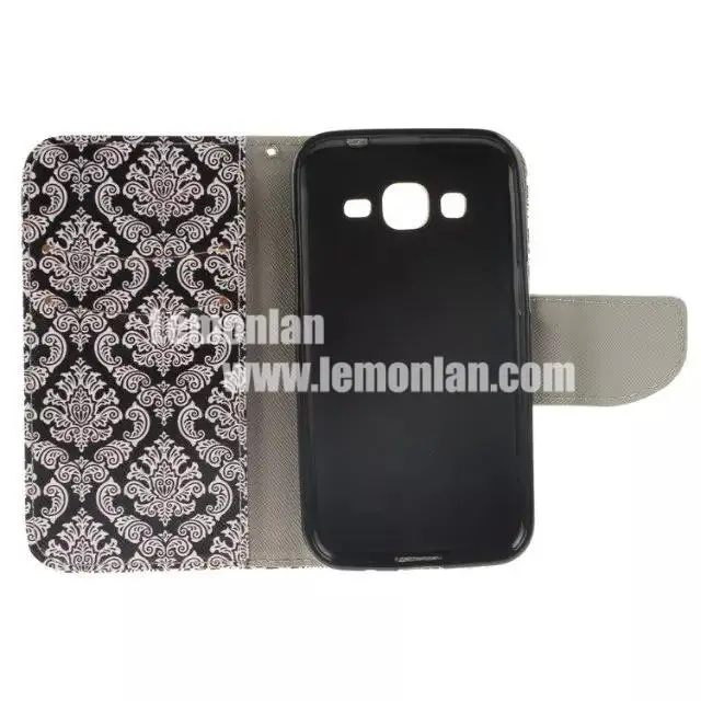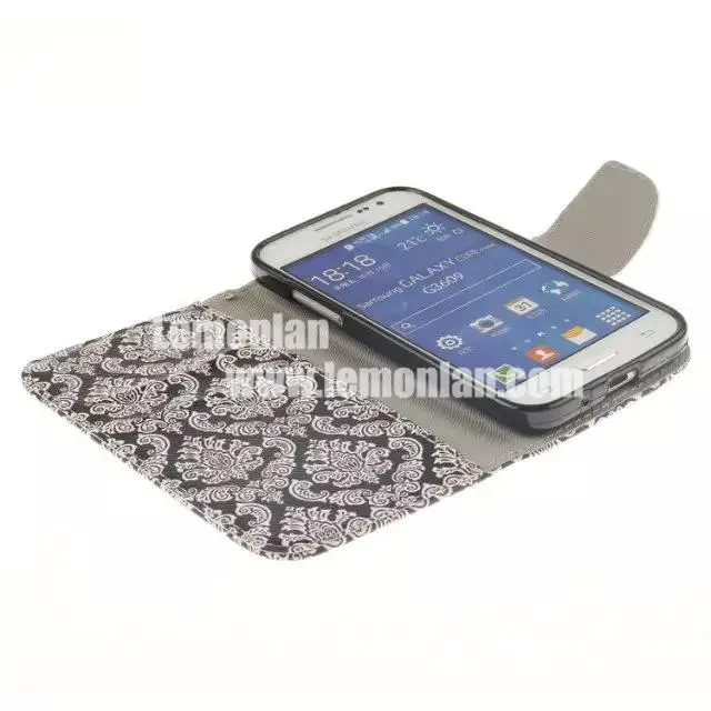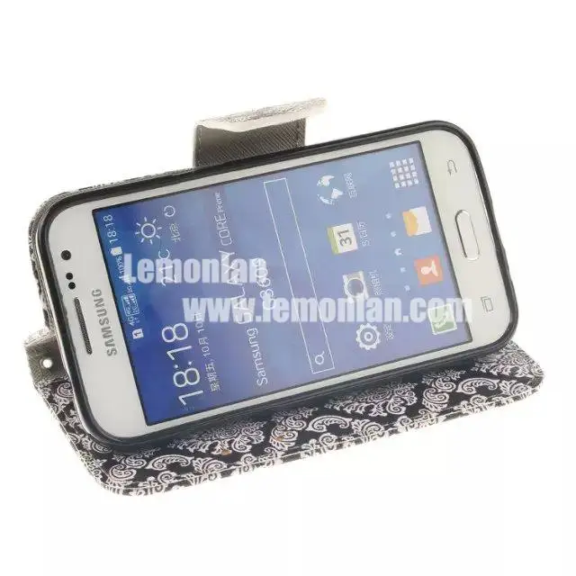クラスプ磁気ナイフpuレザースタンドケース三星銀河用コアプライムsm-g360写真財布ケースフルボディ