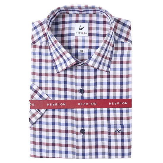 -혼방소재의 구김이없는 썸머울 소재의 체크무늬의 일반핏셔츠.