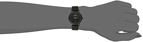 -. Feature : Polished black ion-plated round shaped ultra slim case / Protective Krysterna crystal on front and decorated case back / Black dial with genuine diamond marker at 12 o'clock position and outer minute track / Black matte finish genuine leather strap with black ion-plated tang buckle / Water resistant to 165 feet (50 M): suitable for swimming and showering