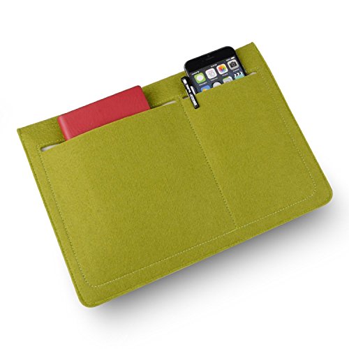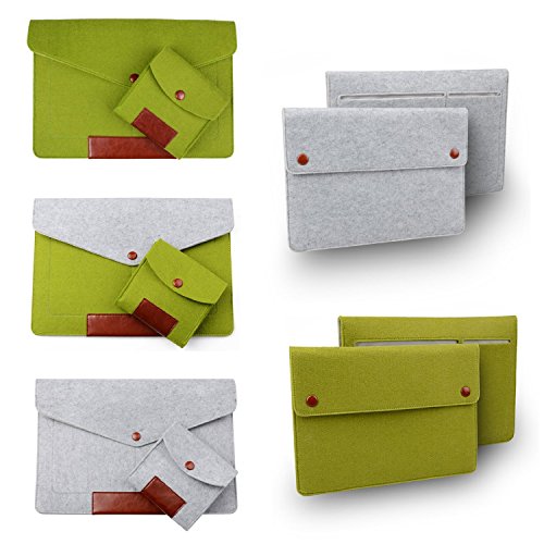 -. Feature : High-quality: Synthetic leather Velcro closure for best security; High-quality felt outside and soft flannel inside. / Perfect magnetic snaps line up: Magnetic button is small but strong enough to snap and hold your device securely inside from dropping out. Just gently snap the button, the special envelope flap can be closed perfectly. / Full enough space:One main compartment for laptop and one back compartment for magazines, books, tablet, etc.; Two front pockets lined with flannel for cellphone, earphones, wallet, etc. / Give your device best protect: Wearable woven of exterior, soft flannelette inner lining provide you laptop 360 degrees of protection. / Additional: small felt bag for mouse, power bank and so on.