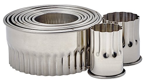 Winco CST-12 11 Piece Heavy Stainless Steel Fluted Round 1-3/8" to 4" Diameter x 2"H Cookie Cutter Set