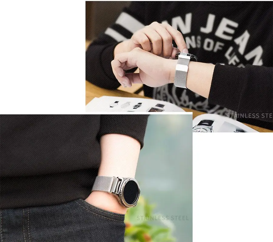 Item:magnetic closure milanese strap for pebble time round watch