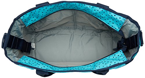 Top-handle diaper bag featuring coordinating changing mat and stroller holder straps