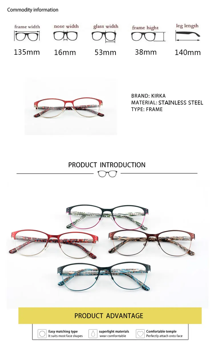 Name:Kirka Elegant Women Glasses Frame Female Vintage Optical Glasses