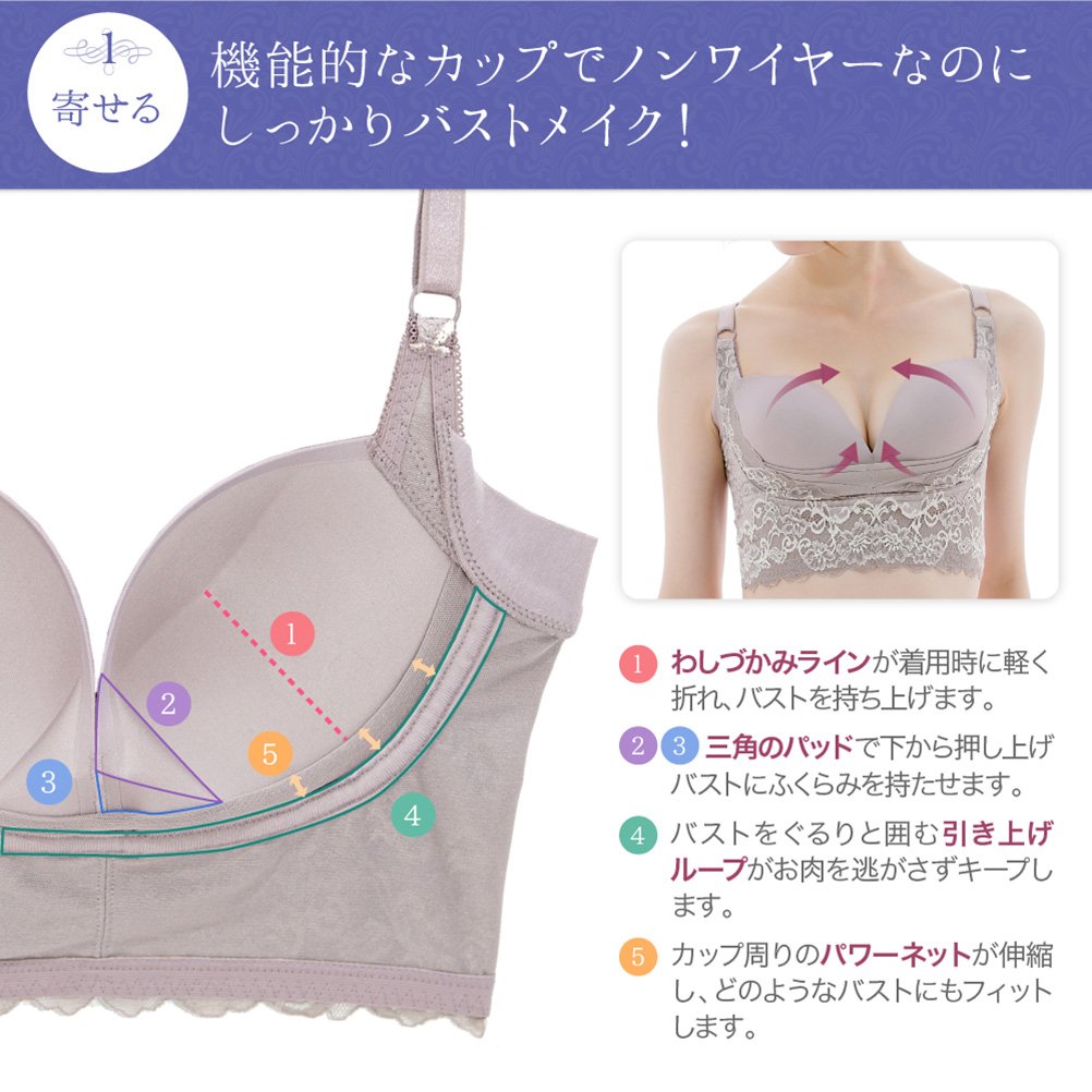 - Although it is a non-wire type, instead of a wire, the "pulling up loop" surrounding the bust surrounds the bust securely.