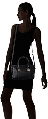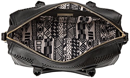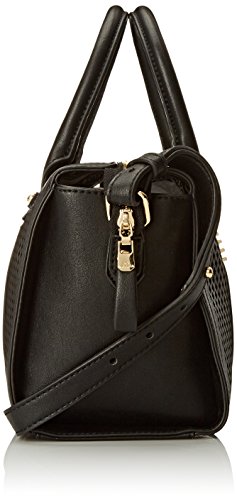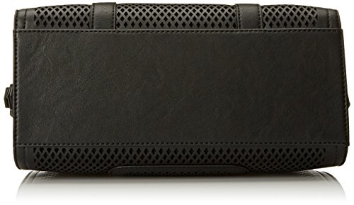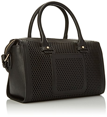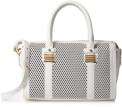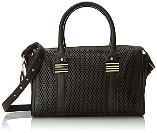 Rectangular satchel with rolled top handles featuring laser-cut diamond pattern gold-tone hardware