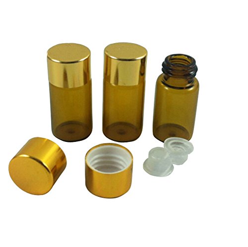 TOPWEL 12pcs 3 ml Amber Glass Essential Oil Bottle with Orifice Reducer and Gold Cap (A#)