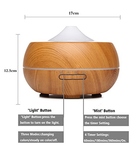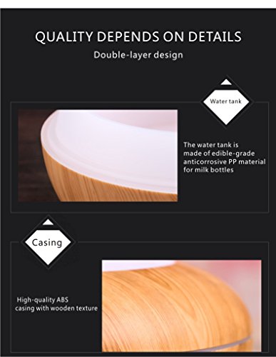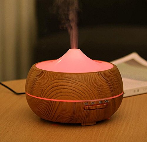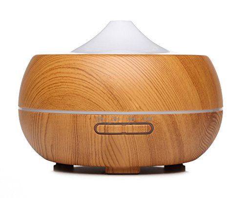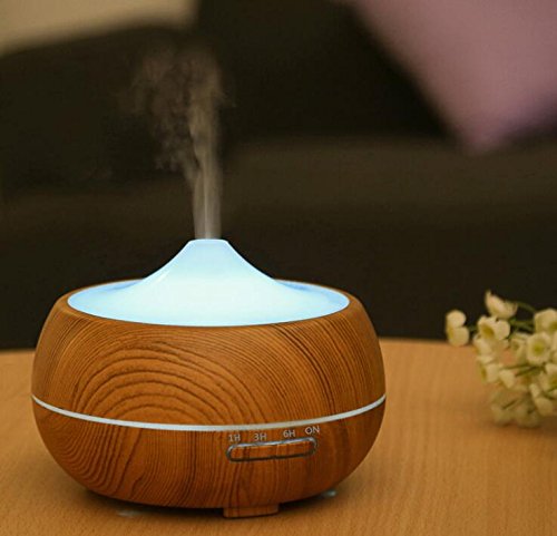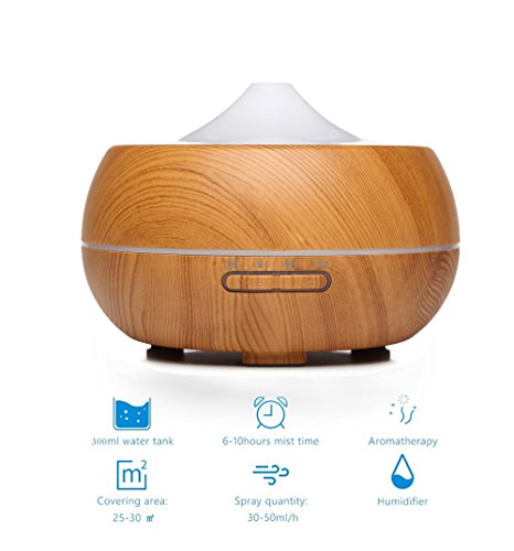 SAWJOY Aroma Diffuser,300ml Wood Grain Aromatherapy Essential Oil Humidifier Ultrasonic Mist Humidifier Anhydrous auto close with 7 Colors switch for home office bedroom Spa Yoga