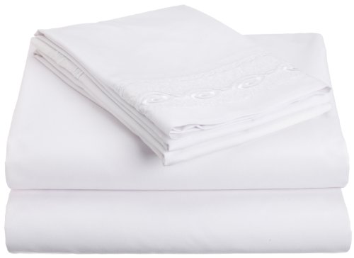 Lamma Loe Silky Soft 100 GSM Microfiber Embroidered King 4-Piece Sheet Set, White