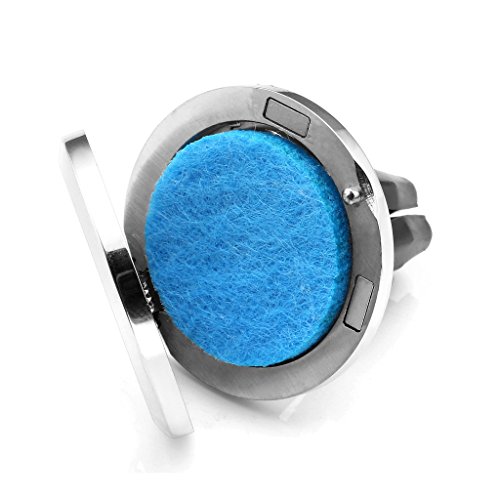 JOVIVI 30mm Car Air Freshener Aromatherapy Essential Oil Diffuser - Stainless Steel Locket with Vent Clips,12 Refill Pads(With Gift Box)