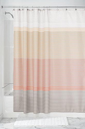 mDesign Horizon Mini Stripe Fabric Shower Curtain - 72" x 72", Coral/Gray