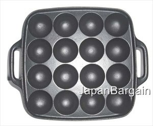 This high quality cast-iron pan is designed for takoyaki, the beloved Japanese street food. Follow tradition and use it for making the popular octopus fritters or branch out and use for new and innovative dishes. Can be heated directly on any gas burner. * Upon first time use, please inspect product for any defects such as cracks or dentations. * Wash with water and wipe dry. When placed on a stove, heat then season with oil. Do not leave product on a source of heat for a prolonged period of time. Use & precaution * upon first time use, surface may stick. Through several uses and seasonings, the surface will develop a nonstick layer. * When storing, wash with hot water, heat product, oil and then store in a dry environment. Avoid the use of detergent. If rust is visible, use a metal scrubber and gently clean the pan then oil lightly. * Storing the product in a humid environment may cause rusting.Feature