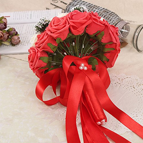 - Title : Gracallet® Red and White High Quality Romantic Rose Silk Bridal Wedding Bouquets Artificial Flower,Western Style Wedding Bride Holding Flowers