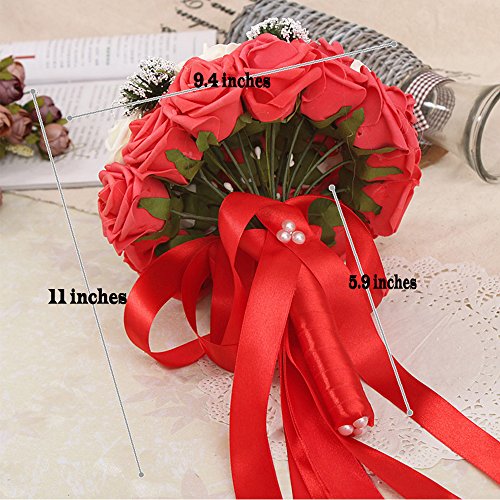- Feature : Include :1*wedding bouquets(24 pcs rose flower + 4 pcs star flower) / Diameter Size: about 9.4 inches,Length: about 11 inches, handle length: 5.9inches / It can be used as the bride bouquet or the flower decorations in wedding. It is also ideal for decorating your home or office. / Silk flowers won't wilt in the heat or freeze in the cold. The consummate choice for all weather conditions. / The silk flowers available to us today are so glamorous and realistic you will be amazed. We think that many of the flowers are even more vibrant and beautiful that their fresh counterparts.