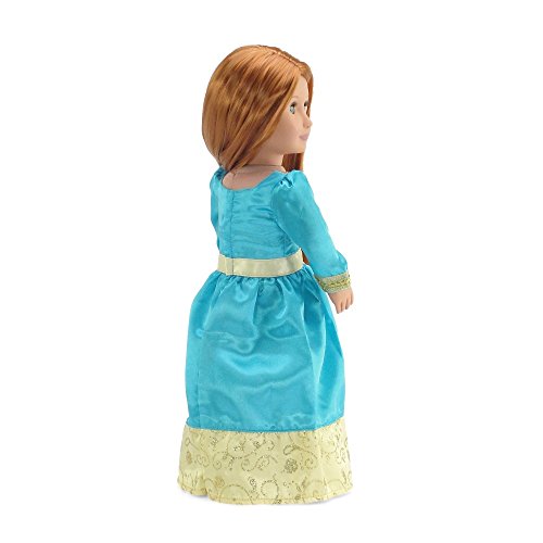 - Beautiful one of a kind 18" doll Merida-inspired princess ball gown with silky teal blue fabric, perfect for playing Disney make believe!