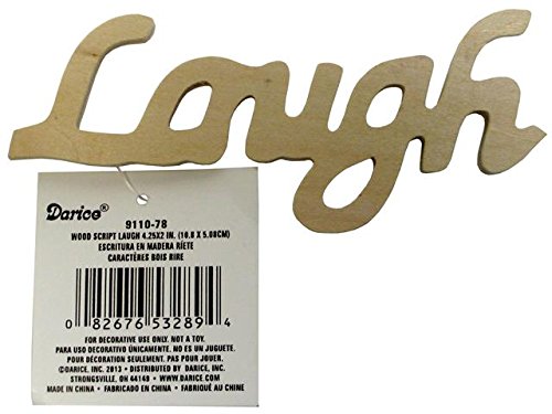 Studio : Darice Publisher : Darice Binding : Kitchen Product Description This wooden script word laugh is perfect for embellishing picture frames, shadow boxes, walls and even scrapbooks. This wood word can be painted, inked, embellished or stained. It is a great modern decor item for special events such as birthday parties, weddings as well. The wood script word features a beautiful script style font, made from a light weight wood. This product weighs 0.056-pounds. Measures 4-1/4-inch length by 2-inch height. 0