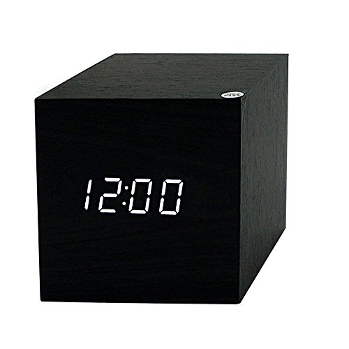 -. Title : ZOCIYA 改良版 目覚まし時計 LED 木目調 時計 音声感知 デジタル時計 温度計 多機能 アラームクロック USB電源 置き時計 8*8*8cm