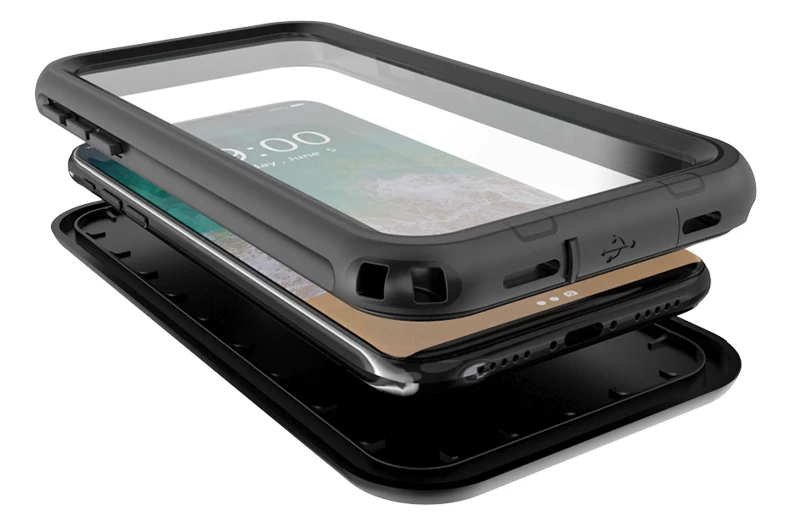 In front is nano soft film, behind is a Plastic cover . Support underwater watching movies, play music, photography . Please check the seal when installed state .