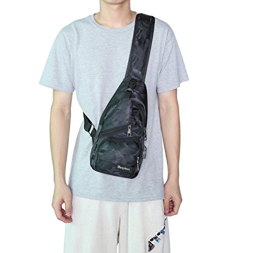 -. Title : Sling Bag for Men Small Lightweight Casual Chest Pouch Crossbody Backpack Single Shoulder Daypack with USB Charging Port Camouflage