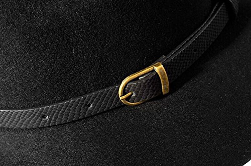 -. Title : The Trendy Women Felt Wide Brim Fedora Retro Belt Top Hat/ Black