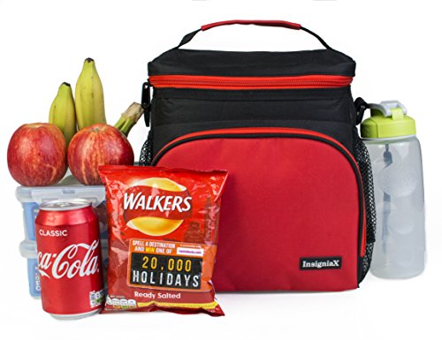 Introducing InsigniaX Insulated Lunch BagEach InsigniaX Insulated Lunch Bag is made with top of the range 600d Polyester, padded with 5mm PE foam and insulated with high grade Aluminium foil to keep your food fresh for long. It comes with detachable / adjustable shoulder strap, a hand carrier, two elastic side mesh pockets and a front zipped pocket to provide additional storage.